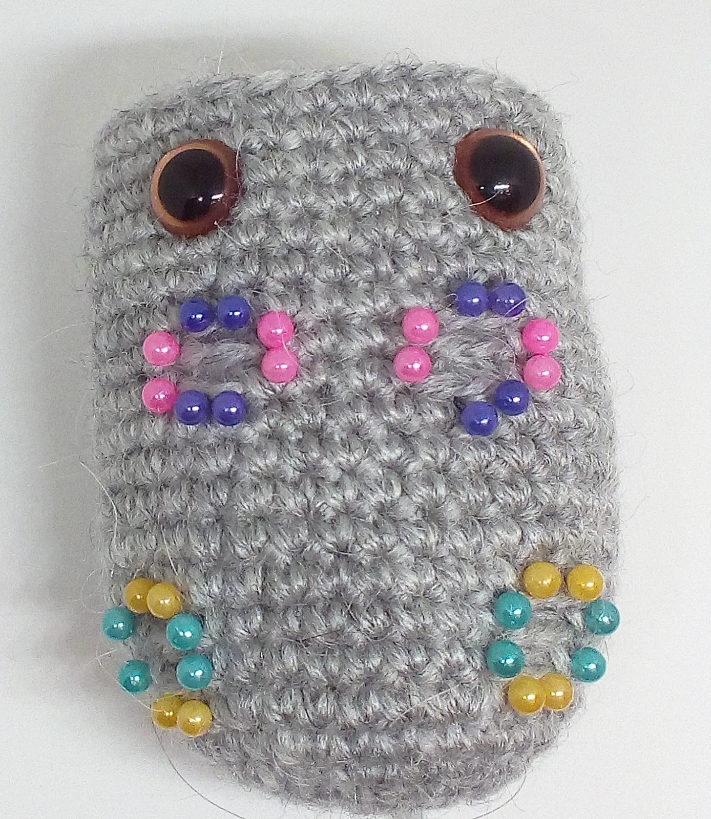 a loose Fly Stitch and black yarn. Embroider the eyebrows with black and cheeks